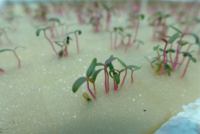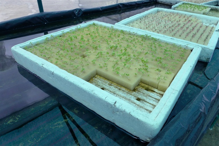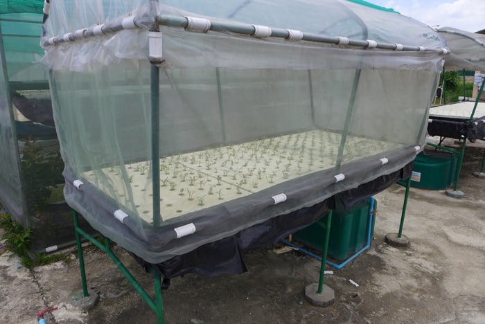 Den metod som är vanligast här i Thailand an att odla ”flytande”. Frön sås i en kub av skumgummi 20x20mm som man skurit ett kryss i. Här sätts fröet ned 3 mm och en hel karta med 60 frön sätts på en frigolitskiva som flyter på en ström av vatten. Frigoliten har hål i botten så fröna får vatten. Efter ca. 5 dagar sätts skummgummikuben med plantan i en ny frigolit som har hål avpassade för skumgummikuben. Den nya frigolitskivan sätts sedan i vattenströmmen.