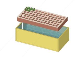 Frön sätts i små stenullsklossar som senare planteras i större klossar ca. 10x10cm. Det går också att använda cocosfiber eller lekakulor men stenull verkar enklare. Plantorna står sedan på en bädd som spolas undertill med vatten som innehåller all näring. Fördelen är att man får maximalt med syre till rötterna under ebb perioden. Under flod perioden pumpas vatten upp från den underliggande tanken och får rinna runt alla stenullsklossarna helt upp till kanten, sedan tappas vattnet ut och en ebb fas inleds. Och så håller det på.