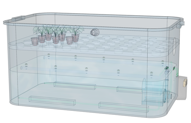 Du behöver en Vattentank, syrepump med syrestenar och vattenpump med spraymunstycken. Ett lock med hål för dina planteringskorgar. INGET ljus får komma in i vattentanken.